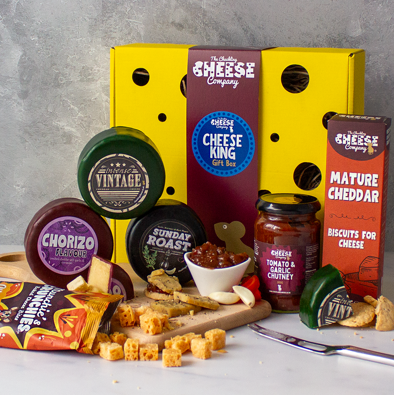 We are a family-run business established in 2015. Here at The Chuckling Cheese Company, we have created a contemporary range of British cheeses ranging from aged vintage cheddars to unique flavours and guest cheeses. With over 50 cheeses available, we have a great British cheese for all occasions!