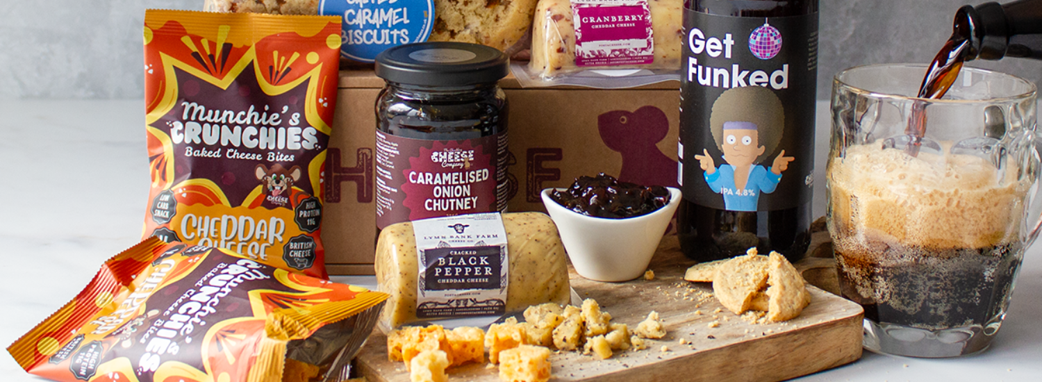 At The Chuckling Cheese Company, we are far more than just another cheese company, the company is one of the fastest growing cheese companies. We have a wide variety of delicious treats for you to enjoy, from gourmet fudge to our own brand of Chuckling Snacks! Our ever-growing selection of Artisan gins & craft beers means we have the perfect selection of accompanying drinks to go with your cheeseboard.