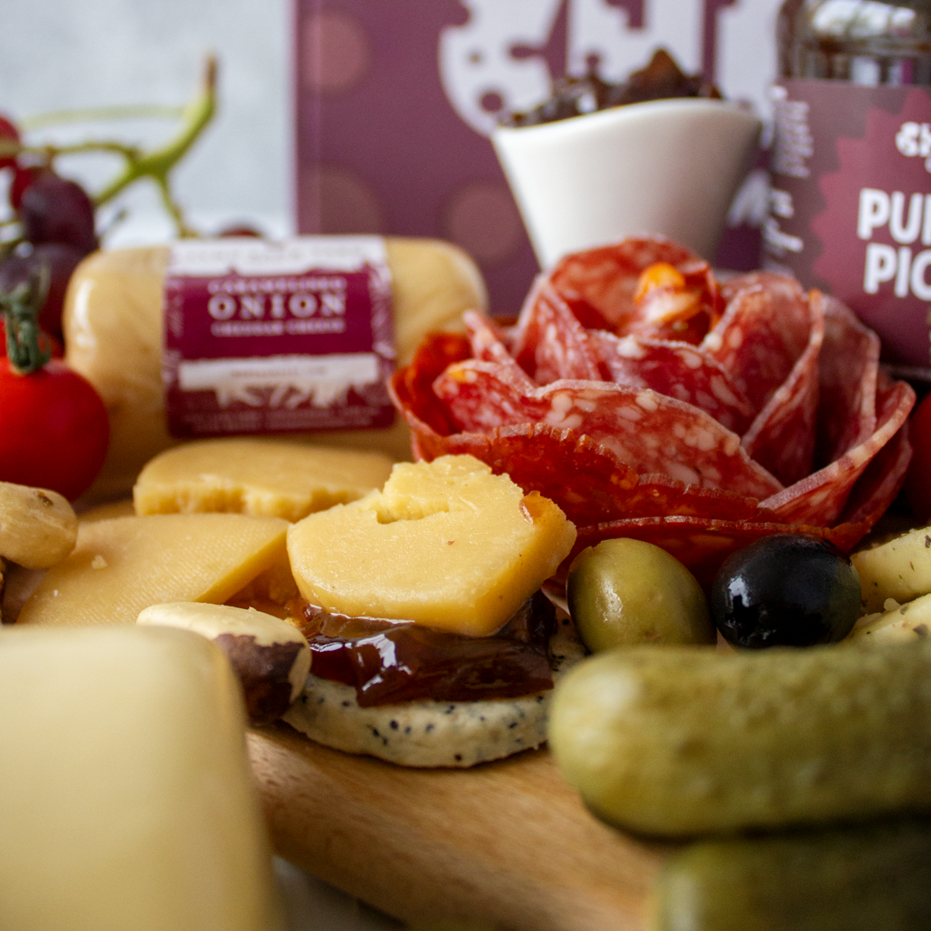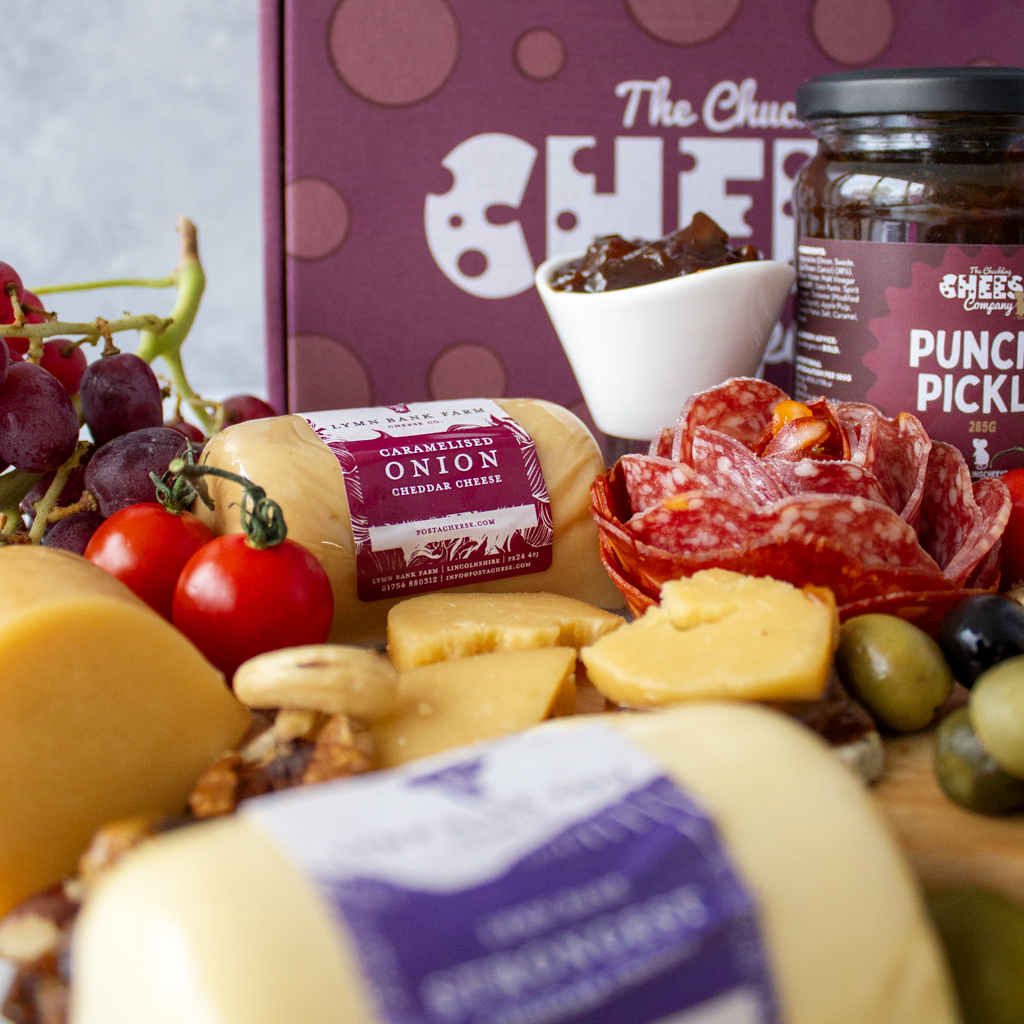 Give them a tasty gift you know they’ll love with a cheese box of our best selling cheddar cheese barrels. This cheese and crackers gift set includes a selection of 3 flavoured cheddars, with our most popular chutney and crackers to pair with them.