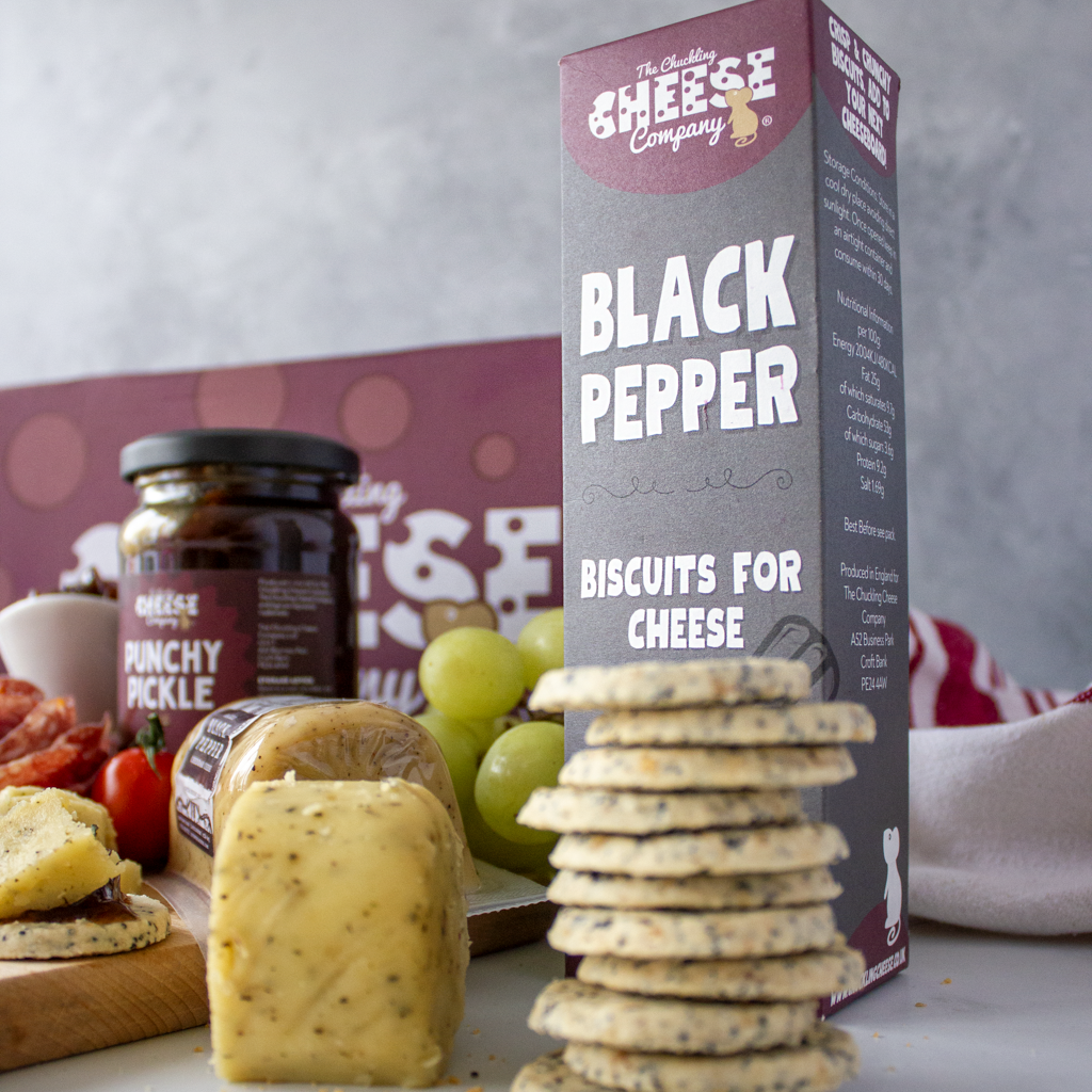 Chuckling Pepper & Poppy Seed Biscuits - Classic, savoury cheese biscuits with a fragrant and light flavour that pair perfectly with our range of cheddars.