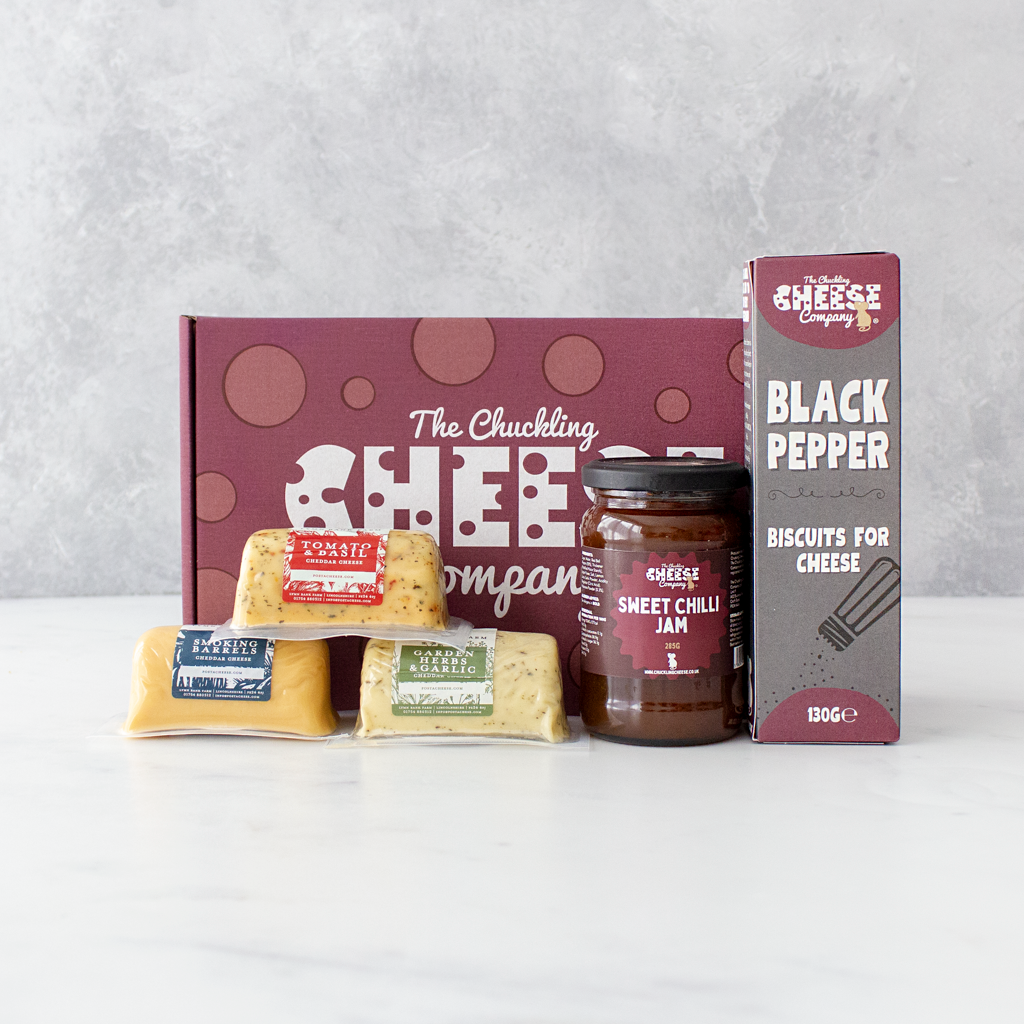 Create your very own cheese gift for the cheese lover in your life. Fill your cheese box with your loved one’s favourite cheddar, cheese biscuits and condiment to satisfy their foodie needs.