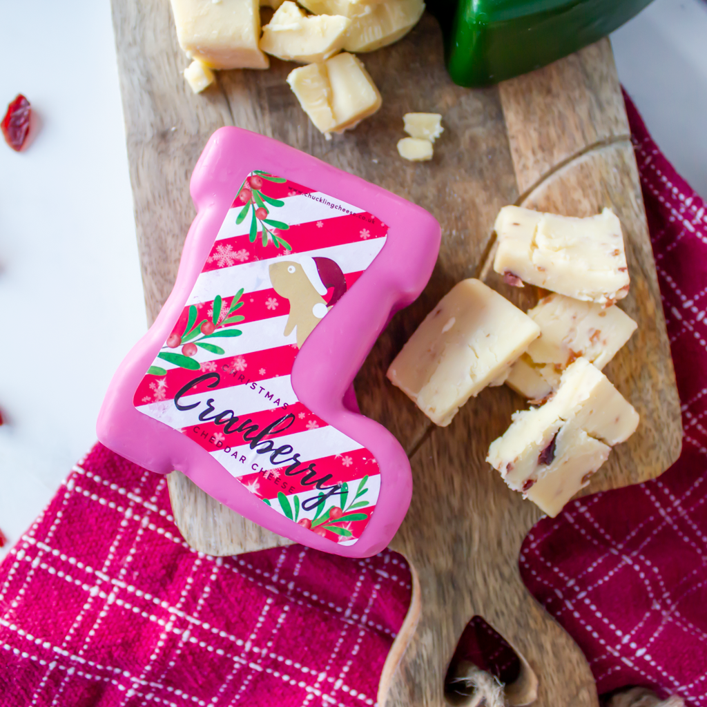 Sweet meets savoury in this festive blend of creamy cheddar and juicy cranberries — all wrapped up in an adorable Santa’s boot shape.