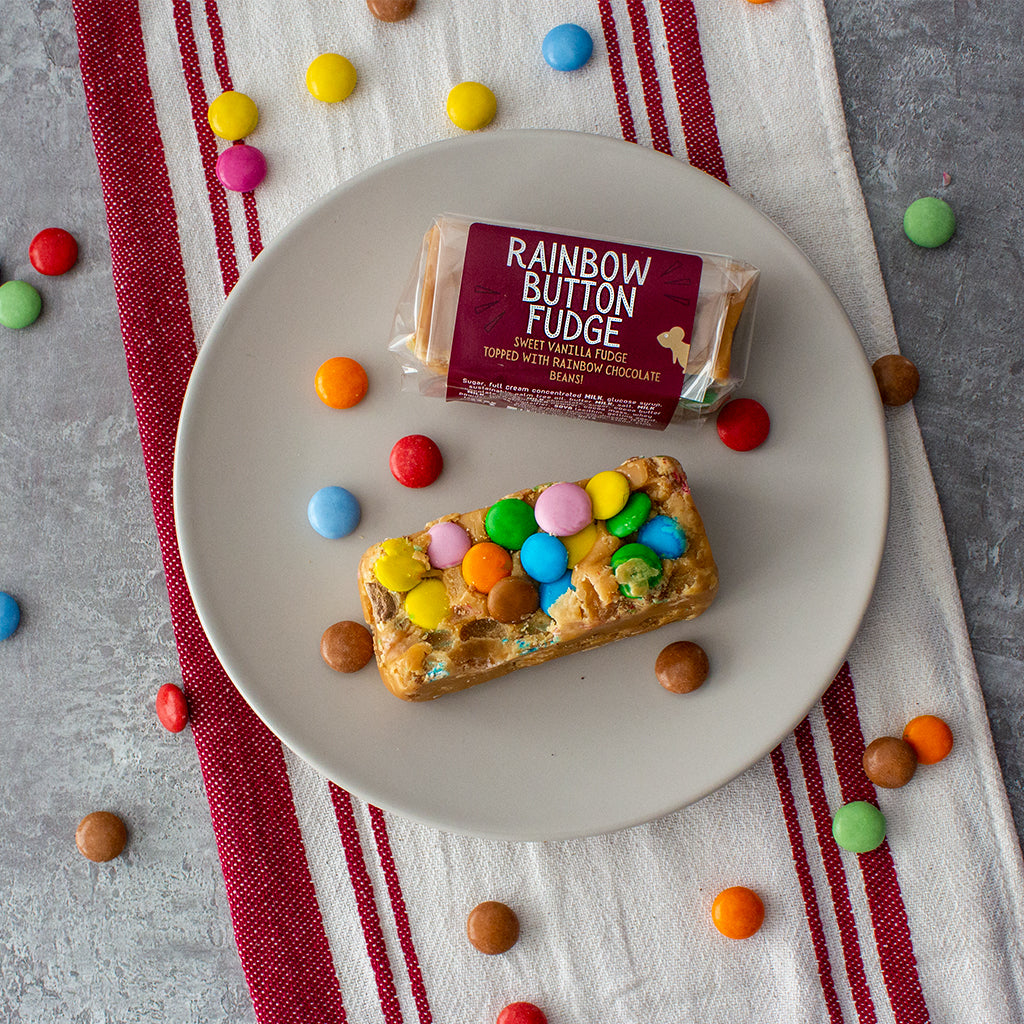 This classic Vanilla Fudge has a creamy texture and has been topped with little rainbow chocolate beans! Guaranteed to brighten the dullest of days.